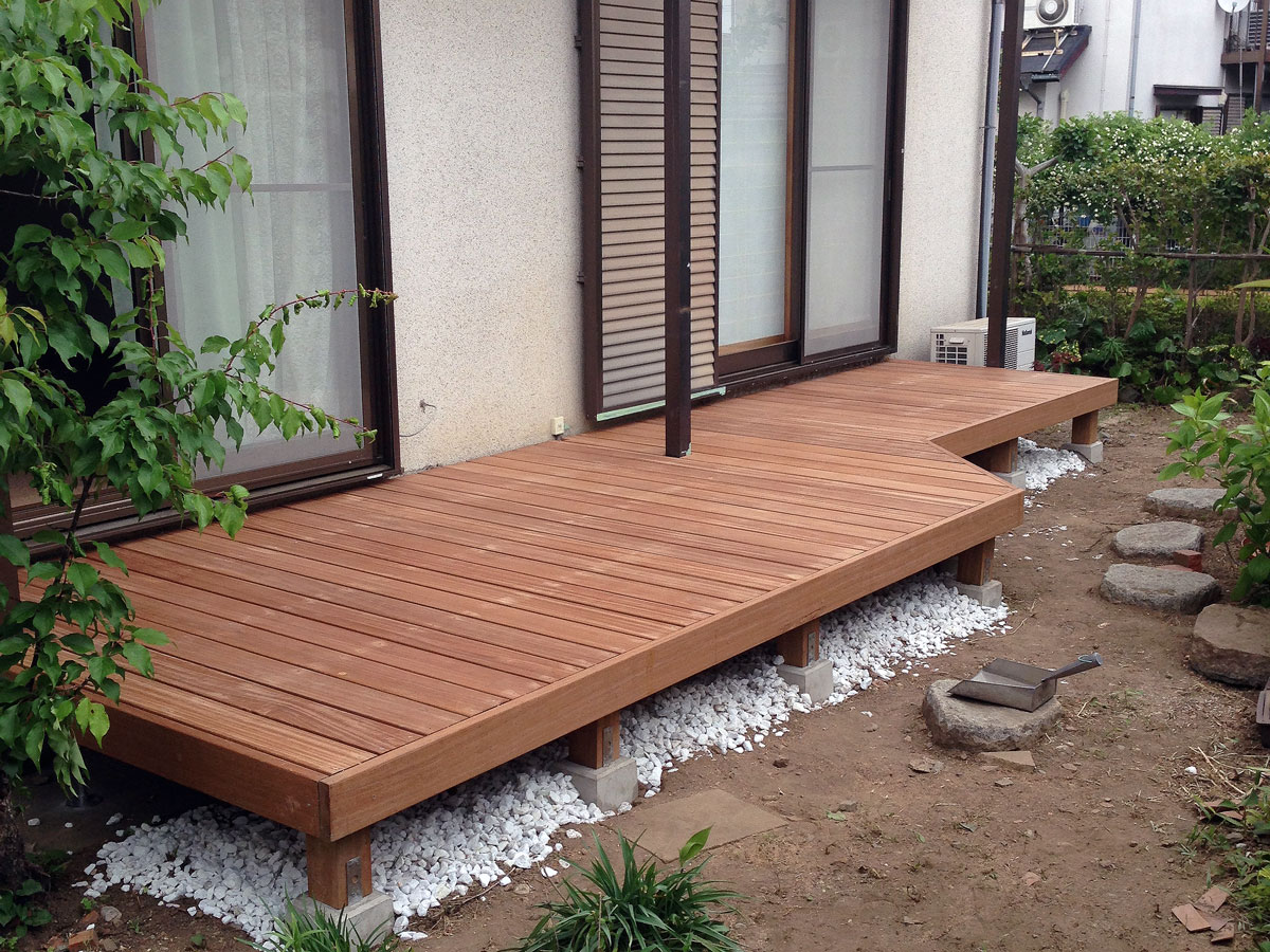 お宅の改修工事(内装や畳替え)の際、庭先にウッドデッキを作りました。